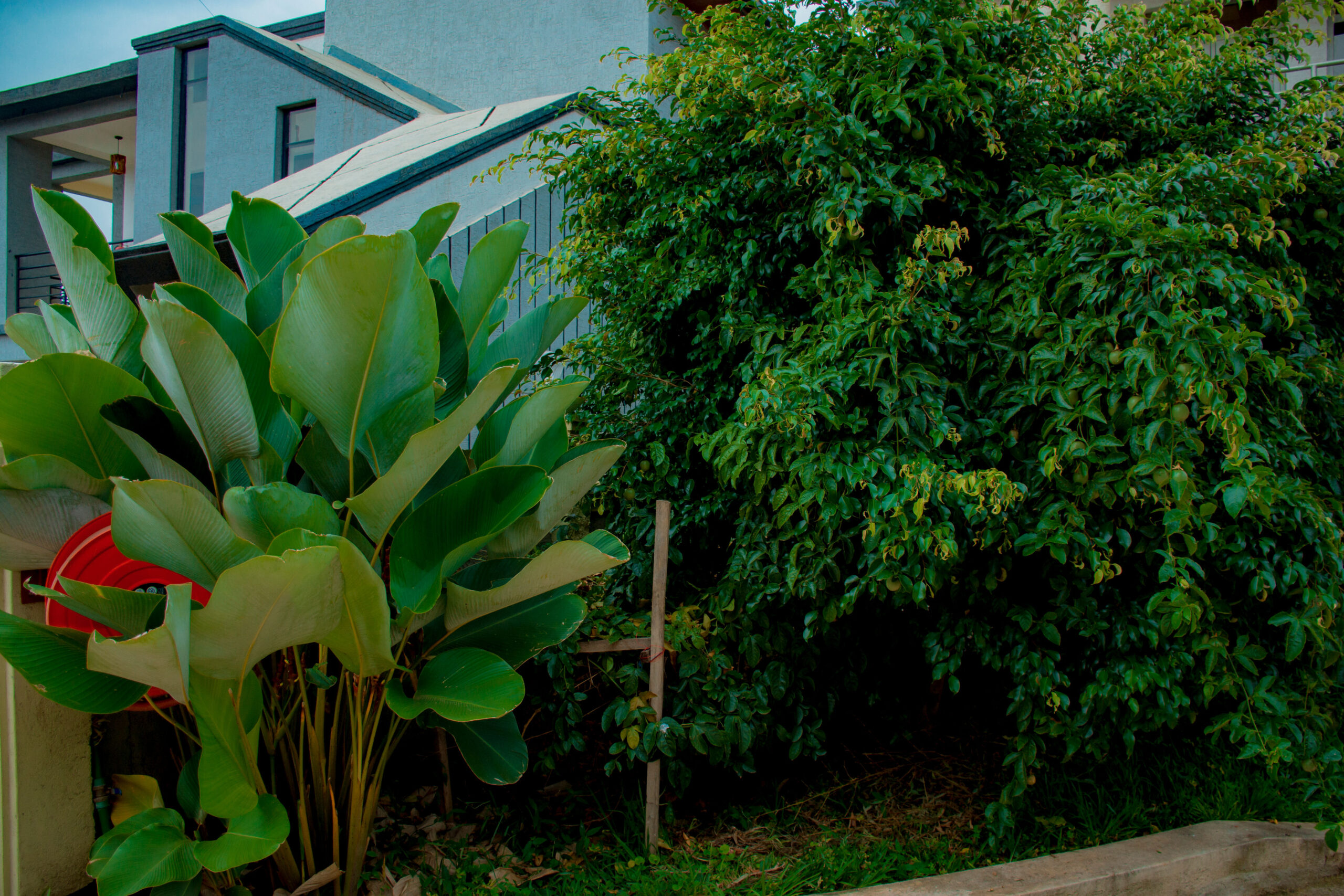• Lush green surroundings with flowers, trees, and natural ambiance